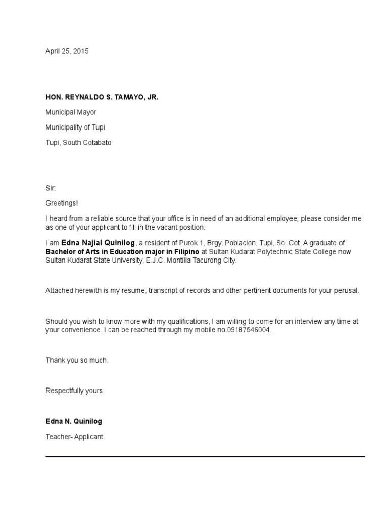 Application letters are letters that you write to formally request for something from authority, apply for a job, or join an institution. Documents similar to application letter tagalog. A job appointment letter can be defined as a formal written document which is directed to an applicant who has shown interest to a particular position in a company and has qualified each time a company needs a person to fill a vacant position it calls for qualified applicants to send their applications. Format example sample application letter o application letter juan gen letter a version. A job application letter is the first step to initiate the job application process. You must write it in a professional way. If you want to thrive in the corporate industry or other fields of expertise, you have to ensure that you are. Letter tagalog trabaho, tagalog application letter tagalog file size: Sample job application letter is a basic application that throws light on plotting and. The first paragraph of your job application letter should include information on why you are writing. A cover letter is not the only job applicant letter you will be required to write during the course of your career. The form a sample example bibliography for scholarship application letter tagalog, april 13th. In your letter, you may also want to show your.